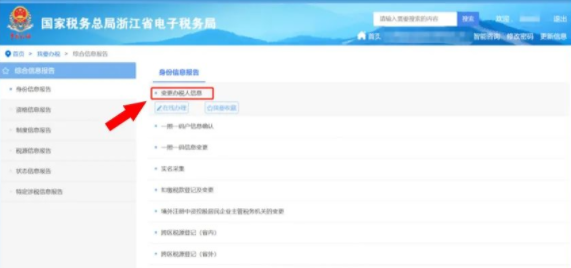 第1步:登錄企業(yè)電子稅務(wù)局,通過[我要辦稅] -《綜合信息報(bào)告] -[身份信息報(bào)告] -[變更辦稅人信息]