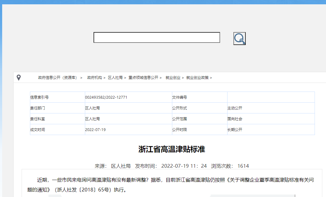《浙江省人力資源和社會保障廳關于調(diào)整企業(yè)夏季高溫津貼標準有關問題的通知》(浙人社發(fā)〔2018〕65號)明確: